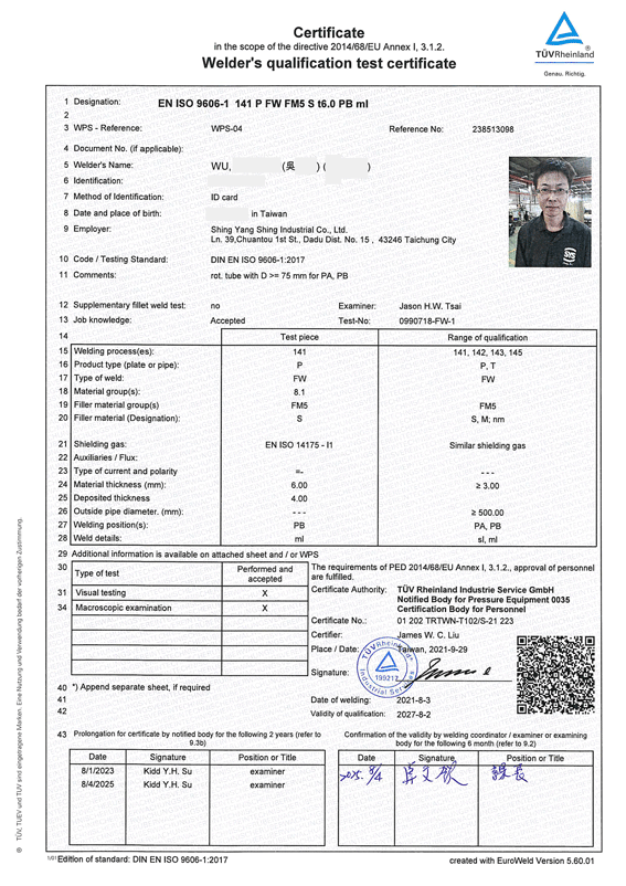 Welder Certificate of CE-WPS-02