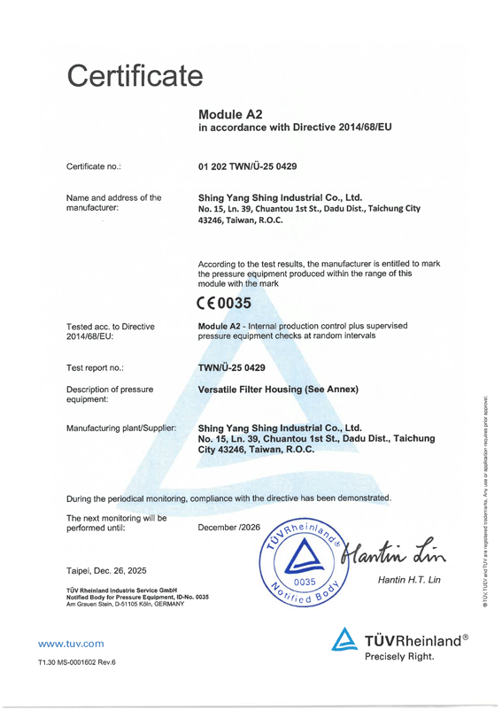 CIC-Satisfactory Manufacturing Examination Certificate of First Type Pressure Vessel
